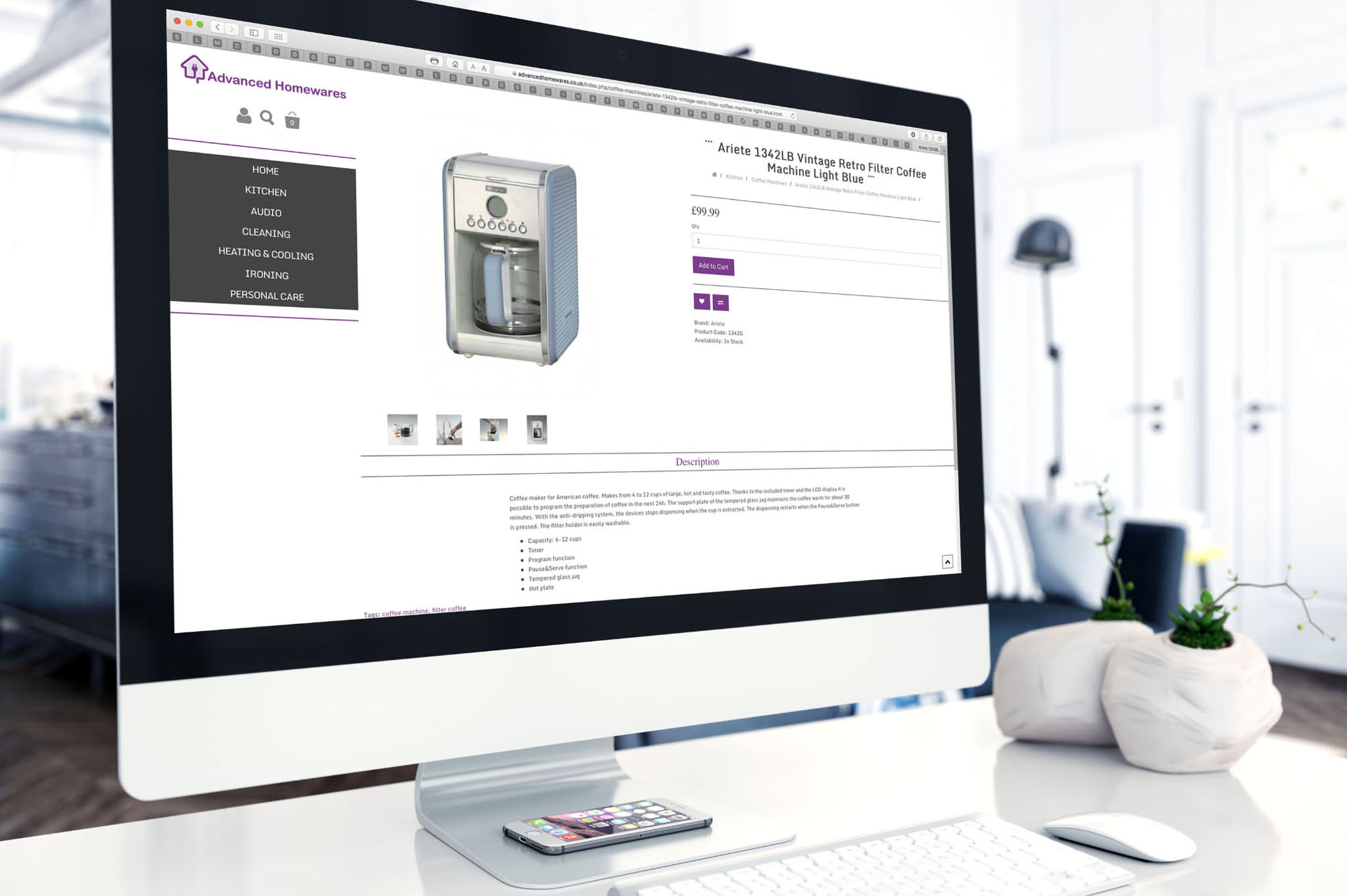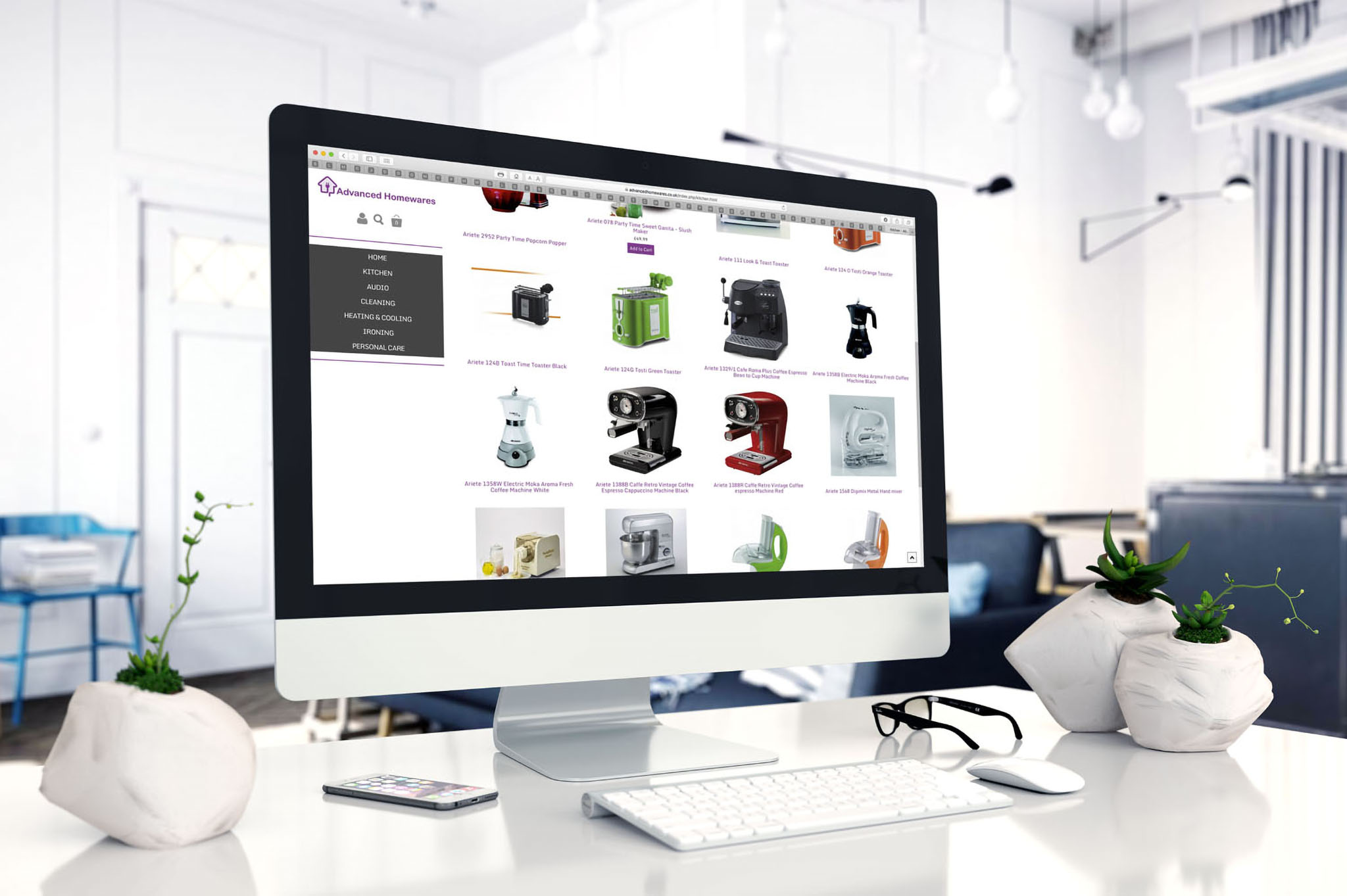 Advanced Homewares is a specialist retailer of high-quality domestic electrical appliances, audio products, and housewares. I created an e-commerce site to complement their Amazon and eBay activities. While the site mainly uses product photographs from the manufacturers' archives, I photographed some of the own-brand items. You can view the website by clicking here.